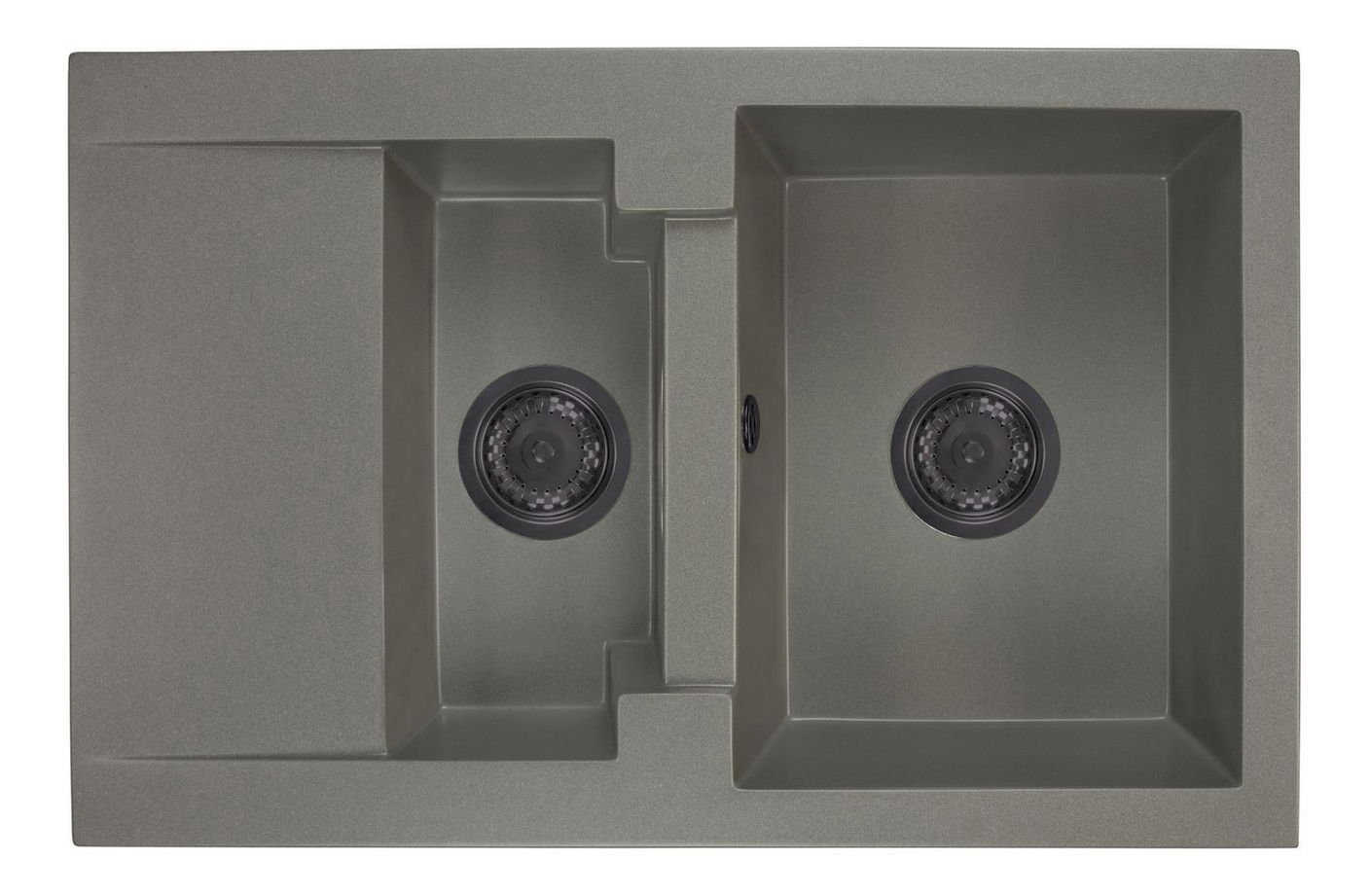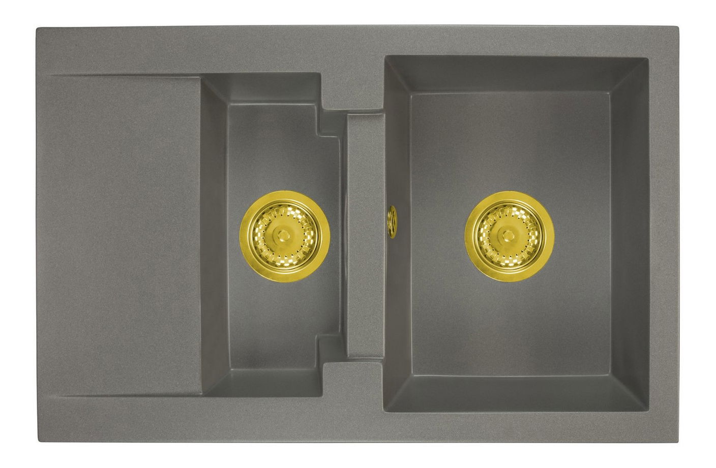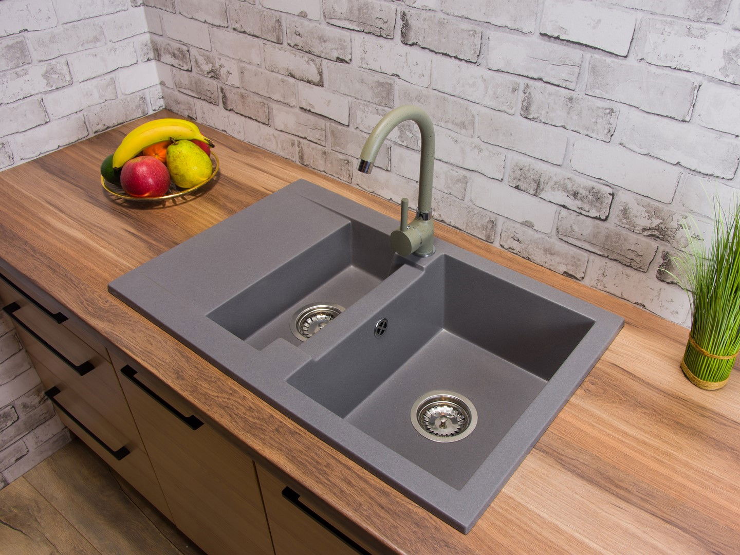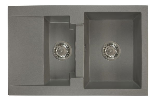 Kuchyňský dřez Dortuna (šedá) (se 2 otvory pro baterii) (L)