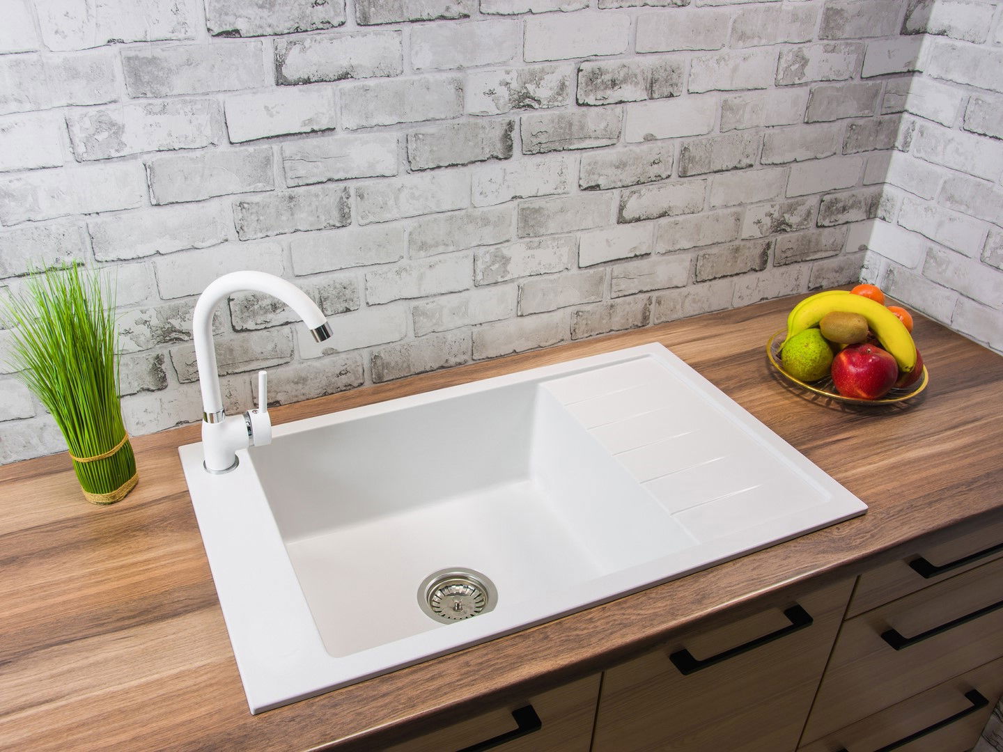 Kuchyňský dřez Lurano (bílá) (se 2 otvory pro baterii) (P)