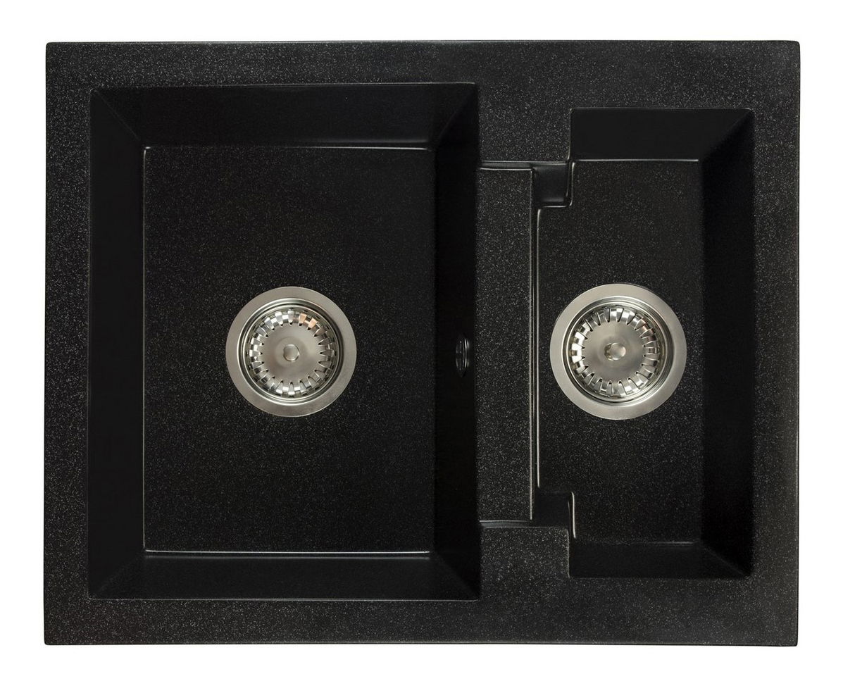Kuchyňský dřez Yagma (černá + textura) (se 2 otvory pro baterii) (L)