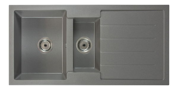 Kuchyňský dřez Yuxur (šedá) (se 2 otvory pro baterii) (P)