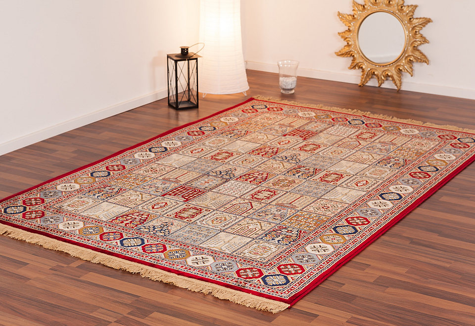 Luxusní koberec Kashmir 830 Red má výrazný design, díky své červené barvě, orientálním stylem, jemné struktuře. Vyrábí se ze 100 % viskózy.