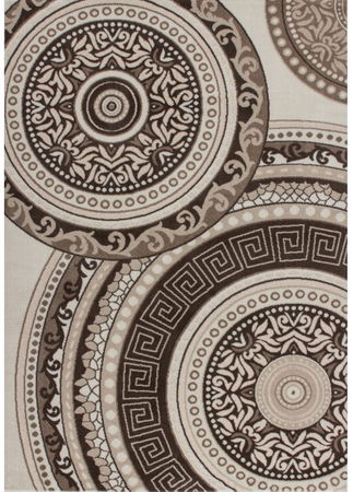 Koberec Princess v hnědo-béžové barvě s jemným medailonem a zajímavou bordurou moderně zapracovanou do orientálního stylu. Princess koberec je vyroben ze 100% polypropylenu s aplikací lurexu, která dodává koberci nádherný lesk a jeho zpracováním je tkanina zároveň odolná. Je vhodný pro alergiky a podlahové vytápění. Výška vlasu +/- 10 mm, váha na metr čtvereční +/- 2.200 g.