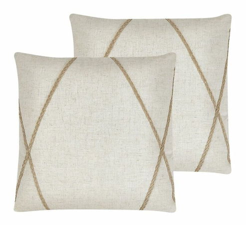 Tato sada dvou polštářů je stylovou dekorací, která dodá každému obývacímu pokoji hřejivý a útulný pocit. Je vyrobena z bavlny a polyesteru příjemného na dotek a je ozdobena jutovými pruhy pro boho vzhled. Polštáře se otevírají na zip a dobře se hodí k jakékoli pohovce ve světlých nebo v tmavých barvách.