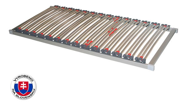 Luxusní lamelový rošt potažený stříbrnou fólií. Lamely jsou uchyceny v pouzdrech, které mají samostatné regulátory tvrdosti, komfortní ramenní zóna.