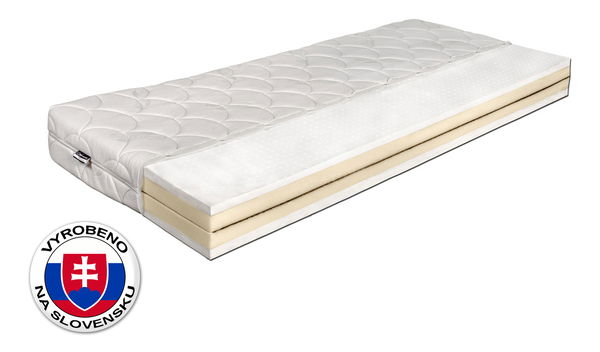 Vysoce komfortní, 19 cm vysoká ortopedická sendvičová matrace složená z LATEX - ových desek a jádrem z kvalitní FLEX - PUR a přírodní kokosové vrstvy. Obsahuje zajištěno provzdušnění perforací latexových desek a použité kokosové vrstvy. Má středové zpevnění pro vyšší zatížení. Vynikající elastické vlastnosti latexu zajišťují dlouhou tvarovou stálost matrace.