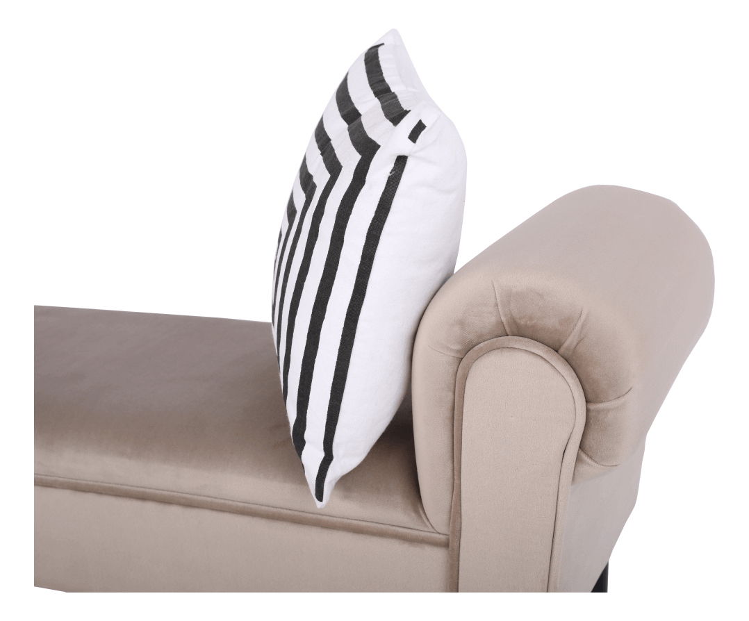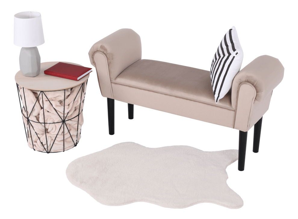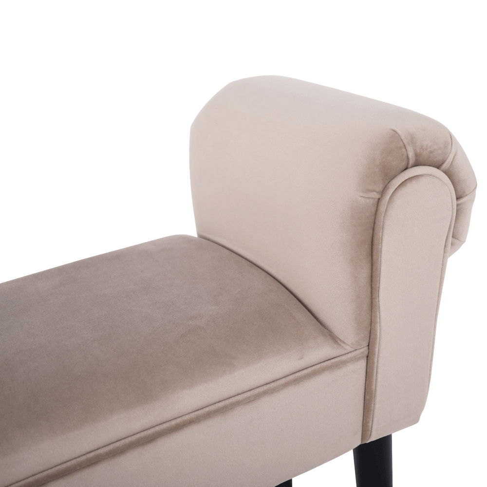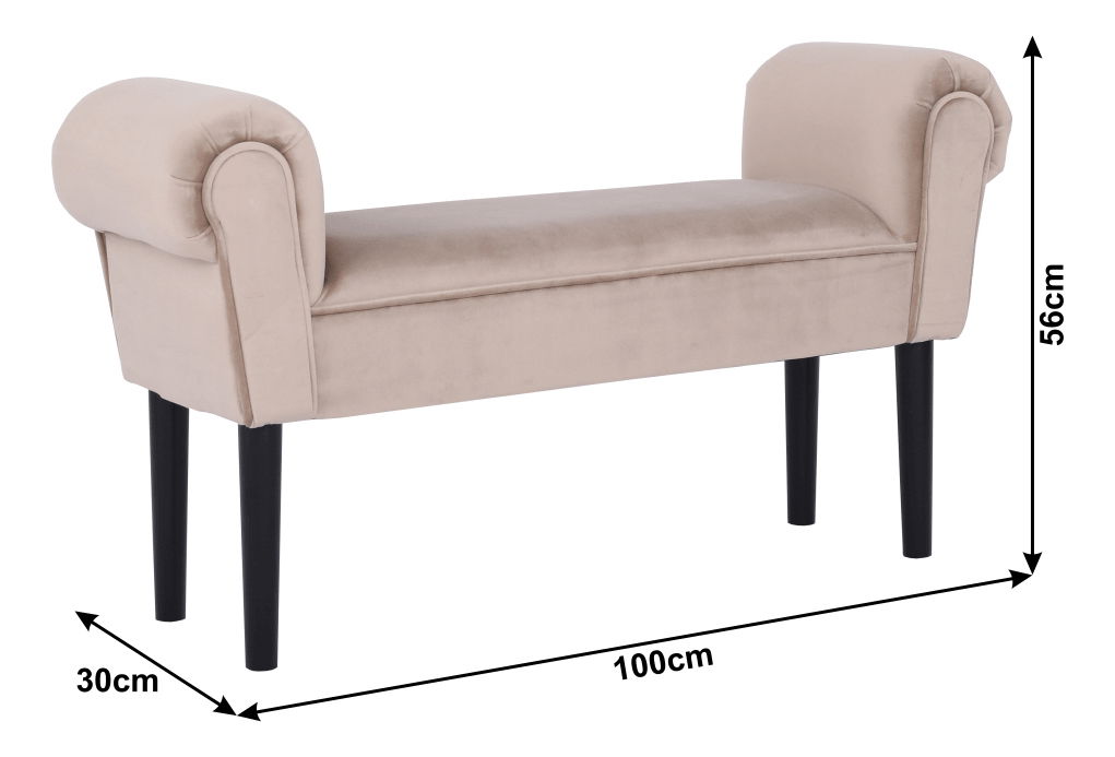 Lavice Bryona (béžovo-šedá) o výšce 56 cm a hloubce 30 cm je vyrobena z látky a dřeva v béžovo-černé barvě. S nosností až 100 kg a výškou sedu 40 cm nabízí komfortní a bezpečné sezení. Technický popis zahrnuje materiál - sametovou Velvet látku a dřevo, barvu, rozměry 100x30x56 cm, nosnost a informaci o dodání v demontu. Lavice Bryona je skvělým doplňkem pro váš domov.