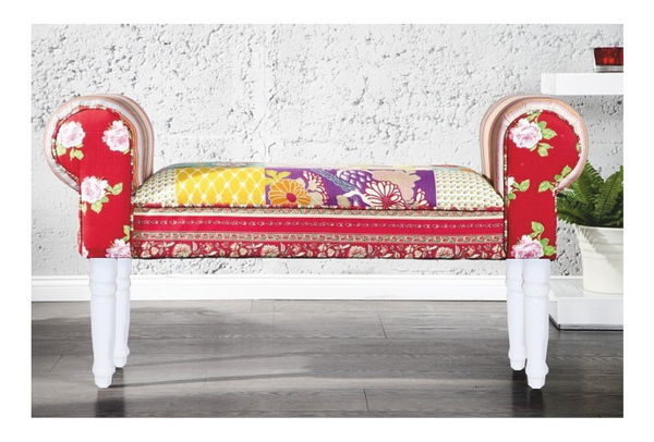 Přineste do vašich domácností kousek elegance a extravagantnosti s touto lavicí. Výrazné květinové vzory a pestré látky jsou zkombinovány s prvky starožitného charakteru. Nohy lavice jsou z masivního dřeva a jsou ozdobně vyřezávané.
