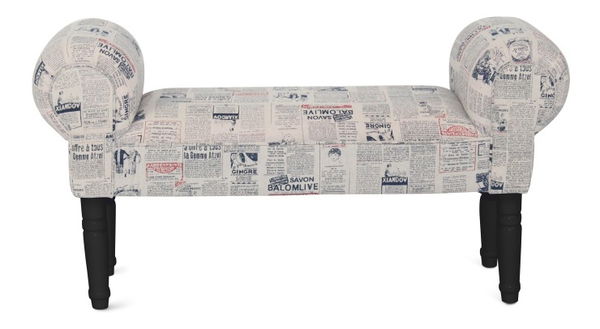Retro styl je v současnosti velmi populární. Tato lavice kombinuje retro vzory s ozdobnými prvky a určitě upoutá pozornost nejedné vaší návštěvy. Nohy lavice jsou vyrobeny z masivního dřeva a jsou ozdobně vyřezávané. Příjemný novinový vzor sedadla se hodí do předsíní, obývacích pokojů nebo pracoven.