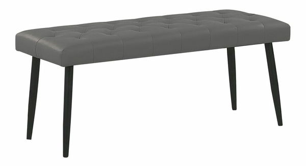 Dekorativní lavička je krásným doplňkem do ložnice. Umožní vám jednoduše vyplnit prázdný prostor v blízkosti postele a stane se užitečným kusem nábytku, na kterém si budete moci posedět nebo na něj odložit věci, které budete chtít mít po ruce. Čalounění z umělé kůže s prošíváním zvýrazňuje okouzlující charakter lavičky a dodává jí půvabné kouzlo. Kovové nohy zaručují stabilitu a odolnost nábytku.