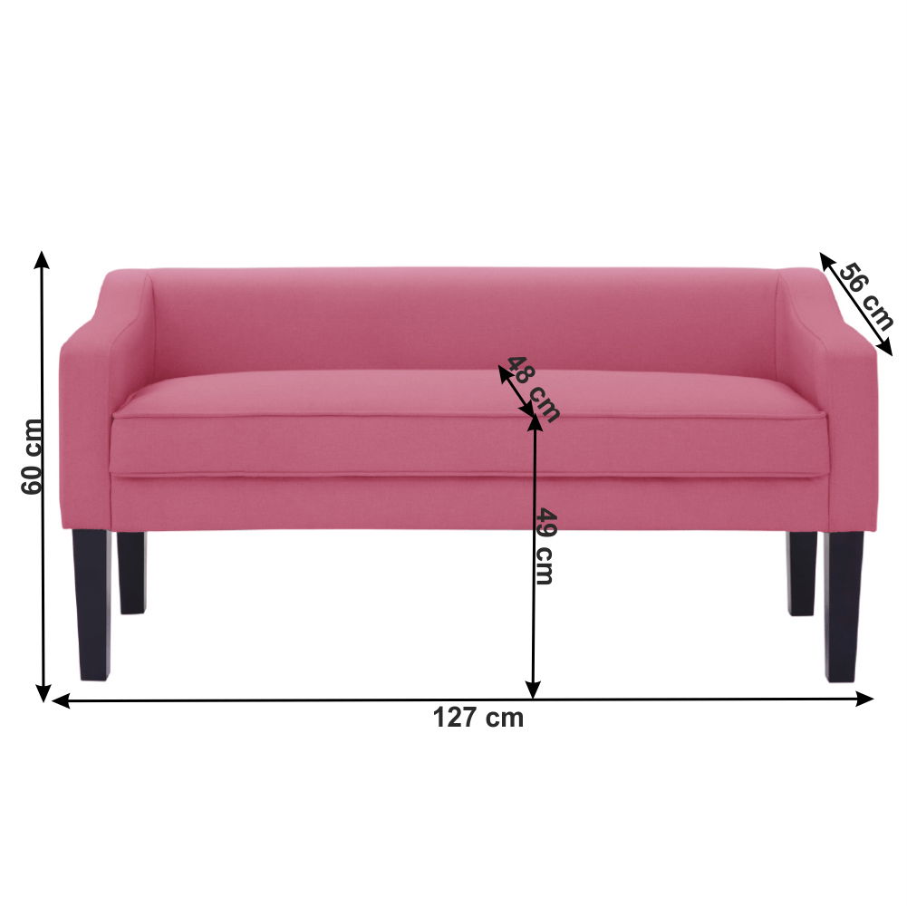 Lavička Firnis (růžová) je skvělý kousek nábytku pro každou domácnost. Vysoká 60 cm a hluboká 56 cm nabízí dostatek místa pro pohodlné sezení. Je vyrobena z kvalitních materiálů a čalouněná látkou v růžové barvě. Nohy jsou vyrobeny ze dřeva a mají černou barvu. Rozměry lavičky jsou 127x56x60 cm, výška sedu je 49 cm a hloubka sedu 48 cm. Dodatečně, lavička je vyplněna pěnou vysoce kvalitního molitanu, což zaručuje pohodlí a dlouhou životnost tohoto produktu.