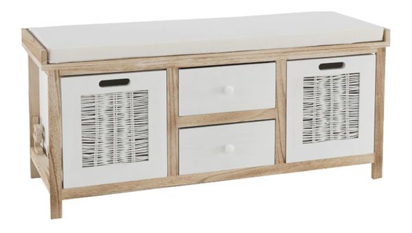 Lavice Linora se 4 zásuvkami lze využít v předsíni. Na lavici si můžete sednout při vyzouvání a obouvání, na vrchu je měkká poduška.