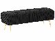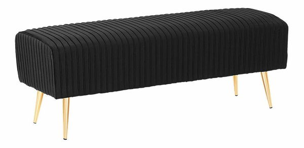 Funkční a elegantní lavička vnese do každého interiéru nádech stylu glamour. Okouzlí vás nejen elegantním designem, ale také kvalitním zpracováním a jemným sametovým čalouněním s výraznou strukturou, které dokonale ladí se zlatým kovovým nohama. Lavička výborně poslouží jako podnožka, lavička k posteli nebo další místo k sezení, díky čemuž je ideální do obývacího pokoje, ložnice i předsíně.