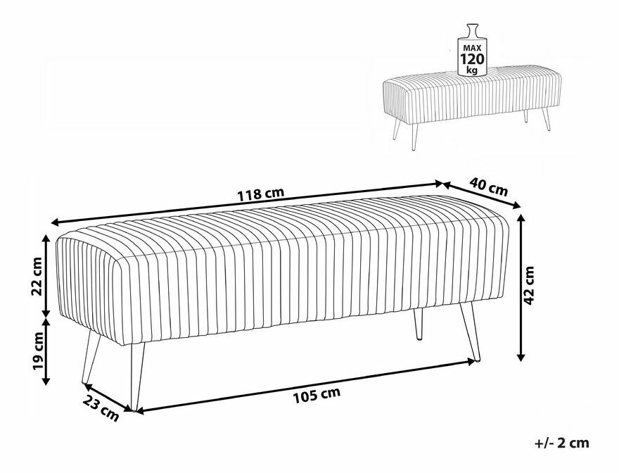 Funkční a elegantní lavička vnese do každého interiéru nádech stylu glamour. Okouzlí vás nejen elegantním designem, ale také kvalitním zpracováním a jemným sametovým čalouněním s výraznou strukturou, které dokonale ladí se zlatým kovovým nohama. Lavička výborně poslouží jako podnožka, lavička k posteli nebo další místo k sezení, díky čemuž je ideální do obývacího pokoje, ložnice i předsíně.