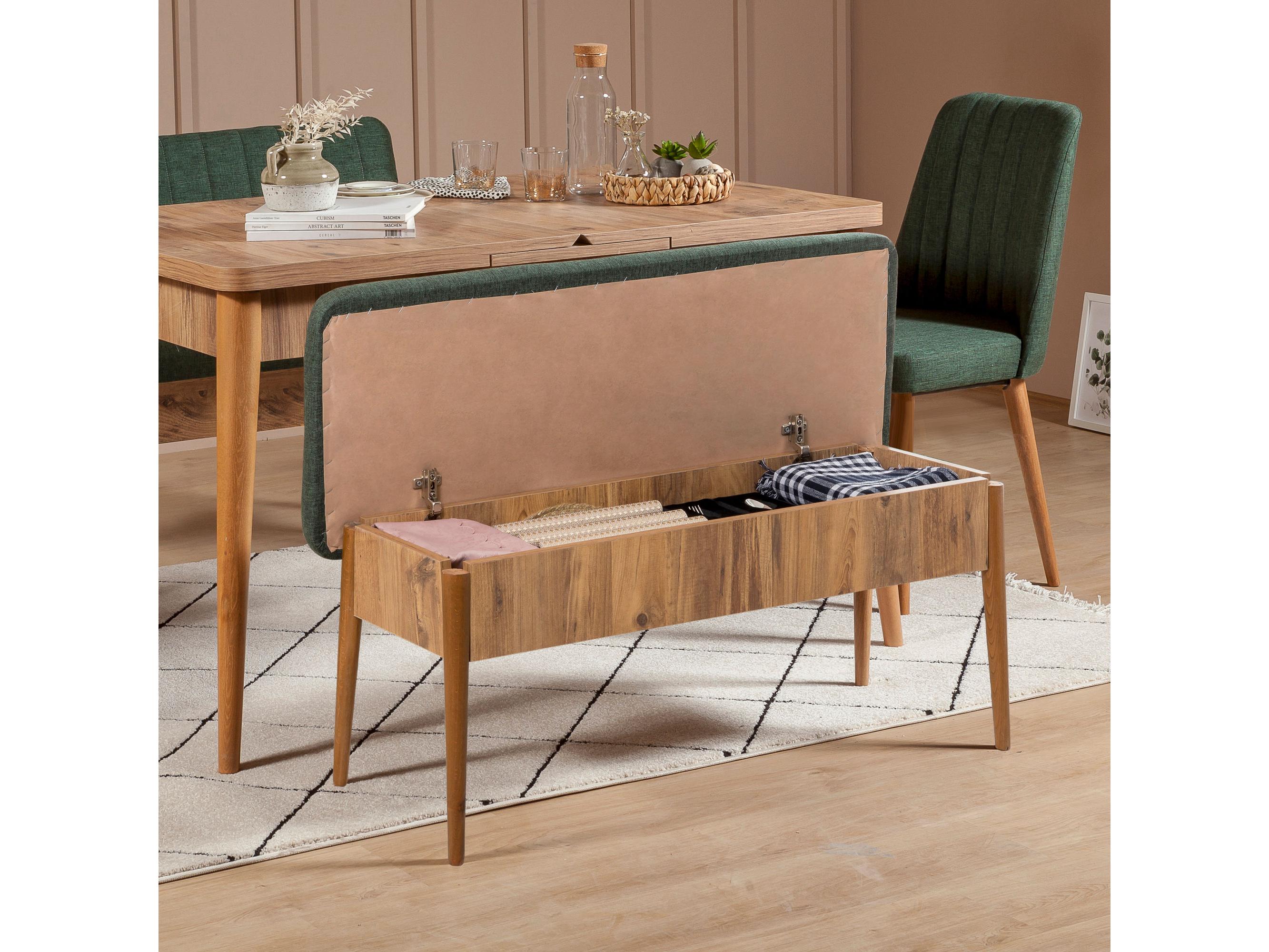 tloušťka: 18 mm, habrové nohy, velikost lavice: šířka: 110 cm, výška: 85 cm, hloubka: 40 cm, velikost úložného prostoru: šířka: 95 cm, výška: 12 cm, hloubka: 27 cm, výška sedáku: 48 cm