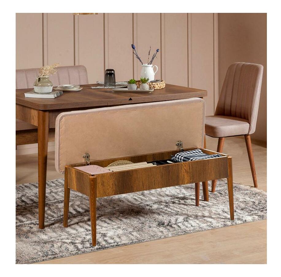 tloušťka: 18 mm, hrabové nohy velikost lavice: šířka: 110 cm, výška: 85 cm, hloubka: 36 cm, velikost úložného prostoru: šířka: 105 cm, výška: 5 cm, hloubka: 36,4 cm, výška sedáku: 48 cm