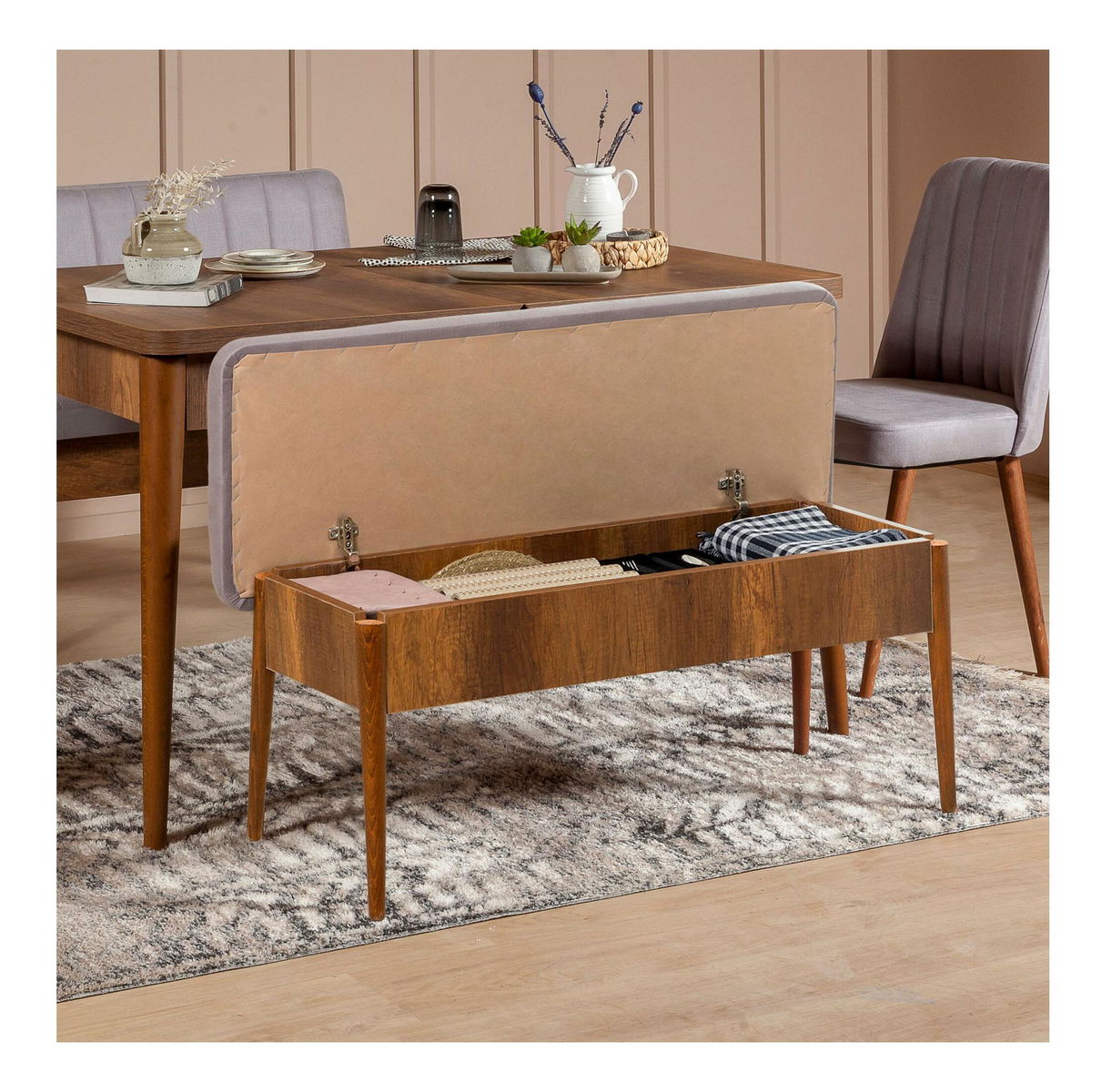 Lavice Vlasta 3 (ořech + světle fialová) (s úl. prostorem)