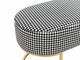 Tato elegantní čalouněná lavice zkrášlí vzhled jakéhokoli prostoru, a to zejména díky vzoru kohouté stopy v klasickém černo-bílém provedení. Její zaoblený oválný tvar nabízí pohodlí a sofistikovaný design, což z ní činí všestranný doplněk do obývacího pokoje, ložnice či předsíně. Kovové zlaté nohy poskytují stabilitu a působí luxusně. Lavička vyzařuje nadčasový šarm a eleganci a krásně vynikne v ložnici u nohou postele nebo v obývacím pokoji.