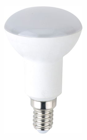 LED žárovkakeramický bílý, satinovaný plast,R50,D: 50,H: 86,včetně 1xE14 LED 5W 230V, 410lm, 4000K
