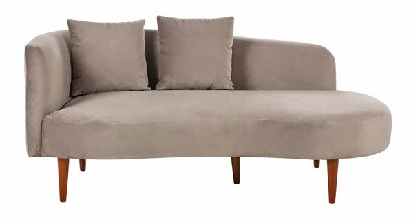 Tato čalouněná lenoška výrazně změní vzhled vašeho obývacího prostoru, vnese do něj moderní atmosféru a dodá vám extra prostor pro ležení a relaxaci po náročném dni. Tento kousek, vyrobený z výjimečně odolného sametového polyesteru v šedobéžové barvě, bude zdobit váš domov dlouhá léta i bez každodenní péče. Lenoška umístěná na nohou z masivního dřeva v tmavé barvě je navíc velmi stabilní, takže se nemusíte obávat, že se bude kývat nebo se převrátí.