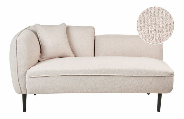 Tato elegantní lenoška je skvělým kusem nábytku pro všechny nadšence moderního designu. Perfektně se hodí do každého obývacího pokoje, ložnice nebo předsíně. Je čalouněná jemnou světle béžovou buklé tkaninou s jedinečnou texturou a je doplněna malým polštářem. Stylový vzhled této lenošky zdůrazňují její štíhlé kovové nohy. Je ideální pro odpolední spánek a stane se dekorativním doplňkem, který zútulní váš interiér.
