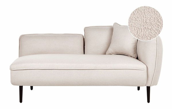 Tato elegantní lenoška je skvělým kusem nábytku pro všechny nadšence moderního designu. Perfektně se hodí do každého obývacího pokoje, ložnice nebo předsíně. Je čalouněná jemnou světle béžovou buklé tkaninou s jedinečnou texturou a je doplněna malým polštářem. Stylový vzhled této lenošky zdůrazňují její štíhlé kovové nohy. Je ideální pro odpolední spánek a stane se dekorativním doplňkem, který zútulní váš interiér.