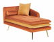 Odpočiňte si po náročném dni na této krásné elegantní lenošce v oranžové barvě. Je vyrobena ze sametu příjemného na dotek, a díky dřevěnému rámu a kovovým nožičkám je také velmi odolná. Sedací část zaujme čtvercovým prošíváním, které zvýrazňuje design lenošky. Pod vrchní sedací částí se nachází ještě jedna vrstva, která zvyšuje komfort při sezení. Součástí lenošky jsou i dva polštáře, které oceníte zejména při odpoledním odpočinku.