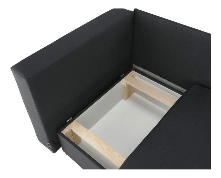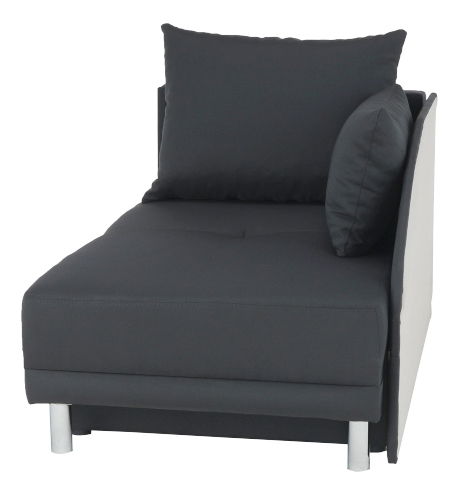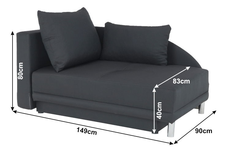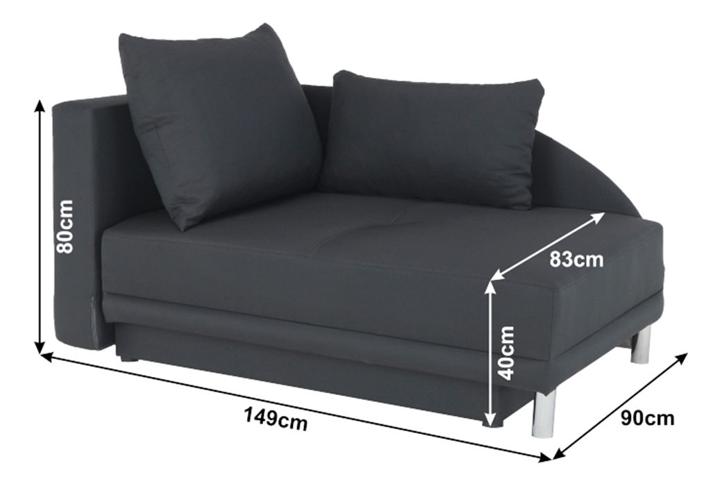 Rozkládací pohovka Laren (L) o výšce 80 cm a hloubce 90 cm v šedočerné barvě s bílým šitím. Tato pohovka má výhodu funkce rozkládání, která umožňuje přeměnit ji na pohodlné lůžko o rozměrech 80x195 cm. Součástí pohovky jsou také dva polštáře a úložný prostor. Tento kousek je ideální pro každého, kdo hledá pohodlí a relaxaci. Rozložená pohovka se díky svým rozměrům snadno vejde kdekoli a nahradí křeslo nebo lenošku. Dodává se ve dvou balících, jeden obsahuje područku a druhý pohovku, zadní část je třeba připevnit k sedací části a područku k pohovce. Materiálem, ze kterého je tato pohovka vyrobena, je látka. Výška sedu této pohovky je 40 cm a hloubka sedu 83 cm. Plocha na spaní má rozměry 80 x 195 cm.