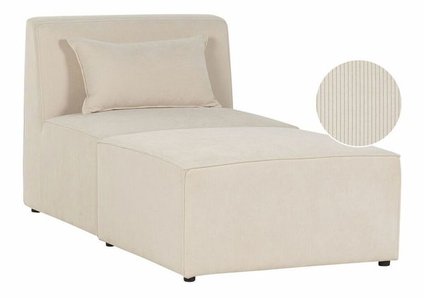 Vytvořte si stylový obývací pokoj s touto moderní lenoškou. Manšestrové čalounění je měkké na dotek a vyznačuje se nápadnou vroubkovanou texturou, díky které vypadá elegantně. Stabilitu lenošky zaručují nohy vyrobené ze syntetického materiálu. Toto multifunkční dvoudílné lehátko bude vypadat skvěle v kombinaci s dalšími kousky nábytku ze stejné kolekce.