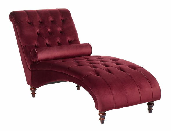 Elegantní, stylová a luxusní lenoška ve vintage stylu se v mžiku stane středobodem každé místnosti. Ladnou siluetu zvýrazňuje zaoblené opěradlo ve stylu Chesterfield. Nádherné bordó sametové čalounění je doplněno ozdobnými knoflíky a nohama z kaučukového dřeva v přírodním dřevěném provedení. Díky silné vrstvě pěnové výplně a malému polštáři nabízí výjimečný pocit pohodlí.