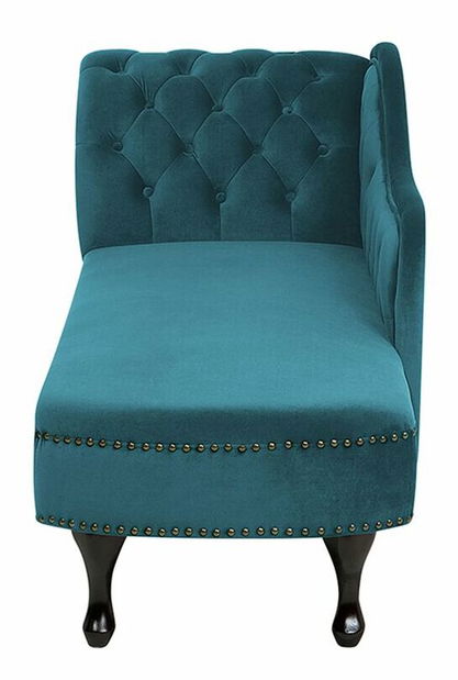 Tato nádherná lenoška je stylovým doplňkem do jakéhokoli obytného prostoru a je ideální do obývacího pokoje nebo předsíně. Kvalitní sametové čalounění, které je doplněno ozdobným prošíváním a kovovým lemováním, je odolné a příjemné na dotek.