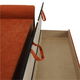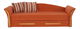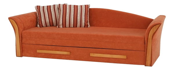 Praktický 3-sed, který se hodí do obývacího pokoje, pracovny, kanceláře či studentského pokoje. Je čalouněný látkou Alova oranžové barvy. Dva pruhované polštáře jsou v ceně. Je rozkládací, čímž vzniká plocha na spaní. Do úložného prostoru můžete umístit polštáře či povlečení. Má ozdobné prvky z masivního dřeva v odstínu olše.