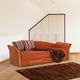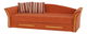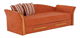 Praktický 3-sed, který se hodí do obývacího pokoje, pracovny, kanceláře či studentského pokoje. Je čalouněný látkou Alova oranžové barvy. Dva pruhované polštáře jsou v ceně. Je rozkládací, čímž vzniká plocha na spaní. Do úložného prostoru můžete umístit polštáře či povlečení. Má ozdobné prvky z masivního dřeva v odstínu olše.