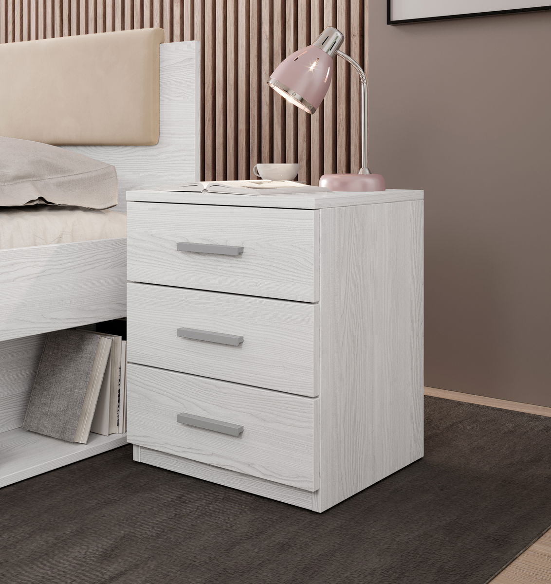 Ložnice Afrodita je prostor, kde se funkčnost snoubí s estetikou. S výškou 56-210 cm a hloubkou 38-101 cm Je to moderním a funkčním designem se skandinávským minimalismem a dostatkem úložného prostoru. Na obrázku naleznete postel a šatní skříň, které lze zakoupit ve třech různých rozměrech a přizpůsobit tak prostoru vaší ložnice. K tomu patří noční stolky se stylovým designem, které se perfektně hodí k posteli. Pro ještě více úložného prostoru si můžete vybrat také designovou komodu s praktickým rozložením prostoru. S touto ložnicí nechte vstup do vašeho společného prostoru moderní a vkusný. Ideální pro každodenní život i výjimečné chvíle.