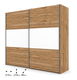 Třídílná komoda v moderním designu Vám umožní uspořádat si oblečení tak, abyste v něm měli přehled. Komoda obsahuje dvě skříňky po stranách a čtyři zásuvky uprostřed. V skříňkách se nachází polička, která nabízí dostatek úložného prostoru. Na vrch komody si můžete umístit dekorativní předměty, lampičku nebo vázu s květinami.