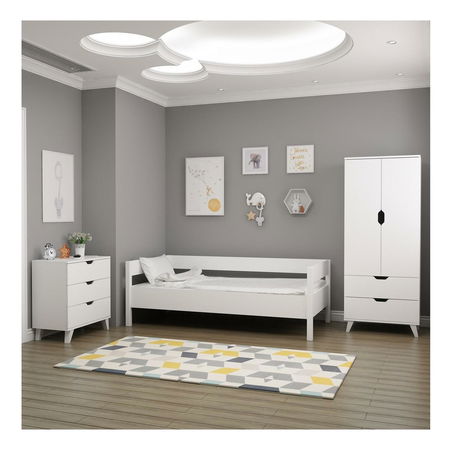 tloušťka: 18 mm, samostatná postel: šířka: 100 cm, výška: 200 cm, hloubka: 69 cm, skříň: šířka: 72 cm, výška: 176 cm, hloubka: 47 cm, komoda: šířka: 72 cm, výška: 740 cm, hloubka: cm