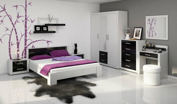 Ložnice Viki Bílá + Lesk černý