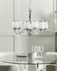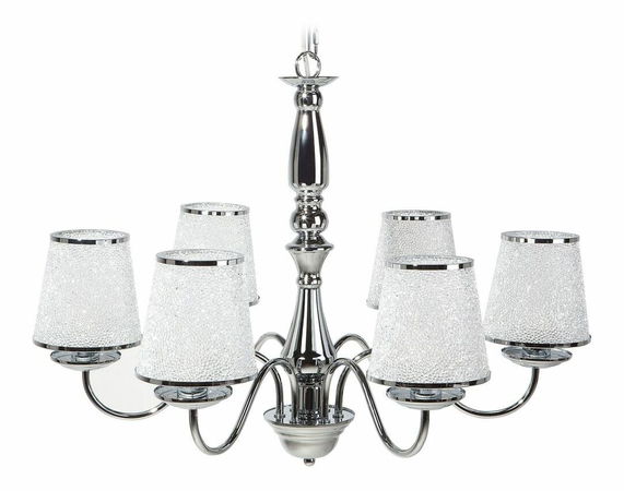 Tato elegantní lampa je moderní variantou klasického lustru. Design se skládá ze šesti světel se světlými stínítky vyrobenými z vysoce kvalitního akrylu. Jsou umístěny na zaobleném rámu s lesklou chromovou povrchovou úpravou. Svítilna vnese do předsíně nebo společenské místnosti glamour nádech a hodí se do interiérů v moderním i tradičním stylu.