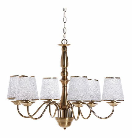 Tato elegantní lampa je moderní variantou klasického lustru. Design se skládá ze šesti světel se světlými stínítky vyrobenými z vysoce kvalitního akrylu. Jsou umístěny na zaobleném rámu s lesklou chromovou povrchovou úpravou. Svítilna vnese do předsíně nebo společenské místnosti glamour nádech a hodí se do interiérů v moderním i tradičním stylu.