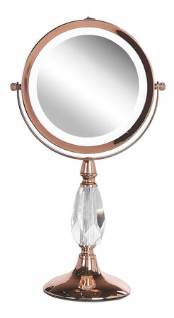 Toto klasické kosmetické zrcadlo s jemným zdobením je dokonalým doplňkem každého toaletního stolku. Klasický rám je vyroben z odolného železa s lesklým, moderním vzhledem. Kousek lze použít oboustranně, takže kromě standardního odrazu můžete použít i 5násobně zvětšený, kdykoli budete potřebovat. Pro dosažení maximálního pohodlí je zrcadlo vybaveno LED osvětlením.