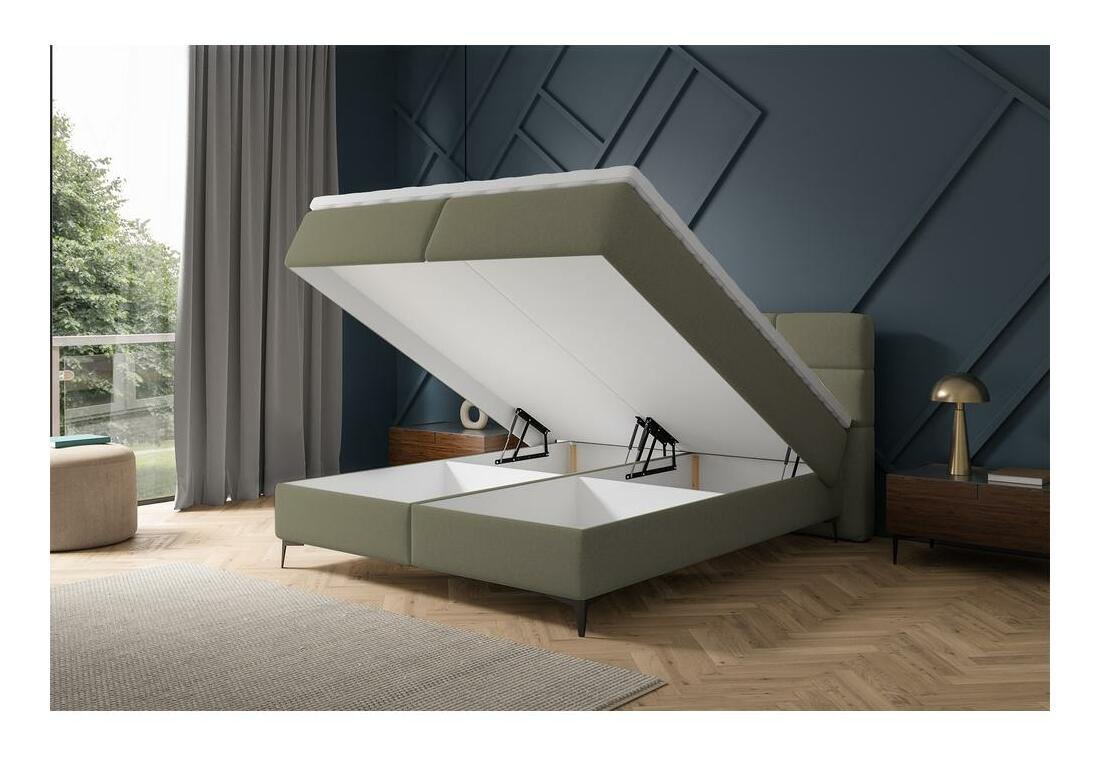Sníte o tom, že strávíte každou noc v atmosféře pohodlí? K tomuto výsledku vám pomůže pohodlná kontinentální postel ze série Kontinentální postel je perfektní volbou pro každého milovníka klasických řešení a maximálního pohodlí. To vše díky kapesní matraci HR 6 LUXURY s topperem. Čelo postele s ozdobným obdélníkovým prošíváním dodává celku kouzlo. Vnitřek postele využijete jako praktický kontejner pro drobnosti a každodenní textil. Za pozornost stojí také čalounění nábytku - je vyrobeno z látky Castel velour s funkcí snadného čištění. Materiál je odolný vůči oděru, tření, žmolkování a žmolkování. Postel se hodí do moderních interiérů a další , luxusní čelo postele zdobené elegantním, obdélníkovým prošíváním, nábytek je čalouněný látkou Castel 39 v olivové barvě, Castel je měkká, hladká látka vyznačující se vysokou odolností proti tření, oděru a žmolkování, díky čemuž je ideální pro každodenní nábytek. Další výhodou je Easy Clean Technology – materiál se snadno čistí, což umožňuje snadné odstranění nečistot s trochou vody a měkkým hadříkem.