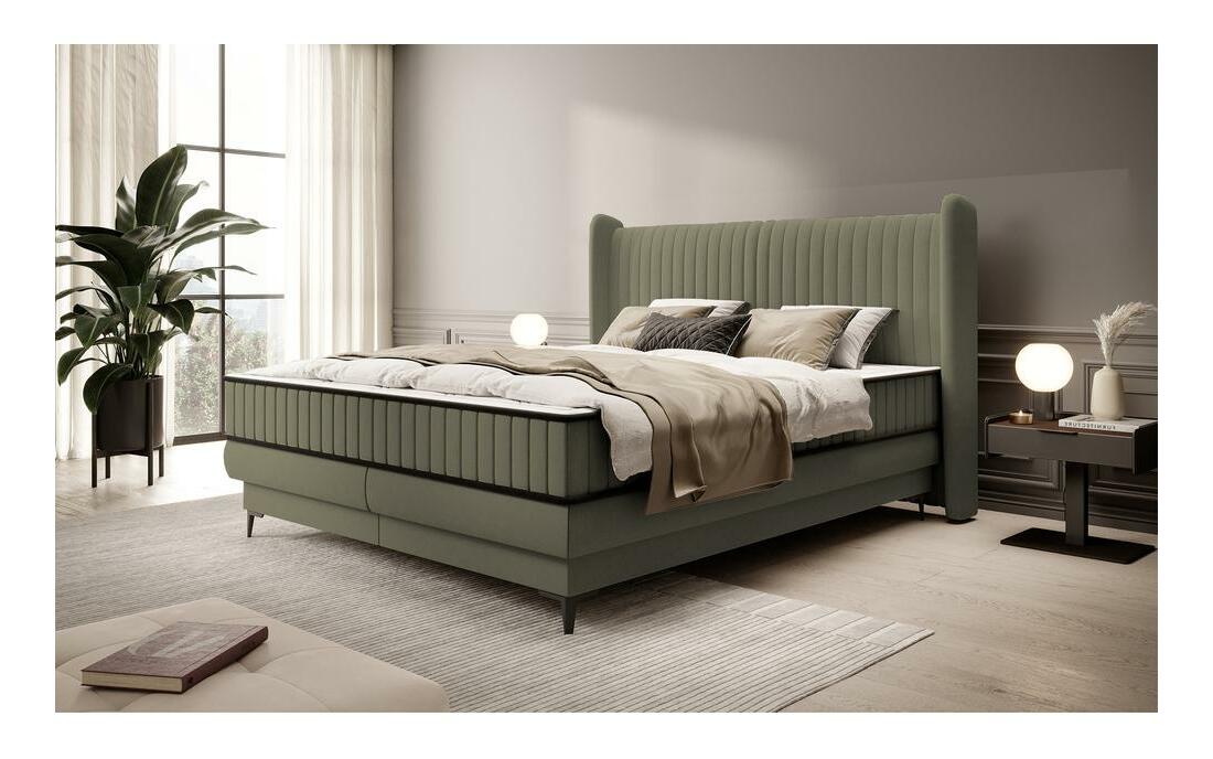 Hledáte pohodlnou postel do ložnice? bude hitem Nenechte si pokazit den nedostatkem spánku a vyberte si naši kontinentální postel! Tento krásný kus nábytku je vybaven čelem s vertikálním prošíváním a dodatečnými bočními panely, které dodávají pocit útulnosti. Prvek bude fantastickou oporou pro vaše záda při večerním posezení nebo čtení oblíbené knihy. Kromě toho je obrovskou výhodou našeho produktu oboustranná taštičková matrace, která oběma lidem, i když mají rozdílné potřeby ohledně tvrdosti matrace, poskytne dostatečný komfort během spánku a zároveň je matrace odolná a odolná vůči deformaci. . Naše postel se perfektně hodí do glamour a moderních interiérů. 180 stupňů, pružinová vložka "kapesní 9 zóna", dvě tvrdosti, čelo zdobené svislým prošíváním, navíc má pevné bočnice, nábytek čalouněný látkou Castel 39 v olivové barvě, Castel je měkká, hladká látka vyznačující se vysokou odolností proti tření, odírání a díky čemuž je ideální pro každodenní nábytek Další výhodou je technologie Easy Clean - materiál se snadno čistí, což umožňuje snadné odstranění nečistot s trochou vody a měkkým hadříkem.