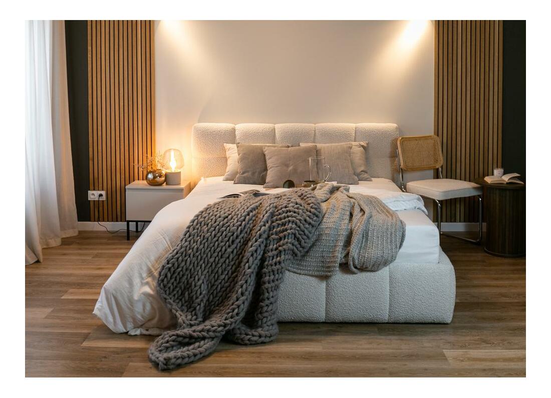 Hledáte dokonalou postel, která splní vaše nejvyšší očekávání z hlediska pohodlí, stylu a funkčnosti? Představujeme vám čalouněnou postel – kus nábytku, který bude plně vyhvat vašim potřebám Čalouněná postel je dokonalým spojením funkčnosti a moderního designu, který dodá vaší ložnici eleganci a styl! Tato postel, navržená s ohledem na pohodlí a estetiku, jistě upoutá vaši pozornost. Stylové čelo postele je navrženo tak, aby dokonale ladilo se zaoblenými hranatými tvary podnože. Tato ucelená kompozice dodává posteli eleganci a harmonii. Oblé tvary celé konstrukce zdůrazňují moderní charakter nábytku, díky čemuž je skutečnou ozdobou interiéru. Kvý rám, na kterém spočívá matrace, poskytuje pevnou oporu a odolnost. Díky tomu můžete klidně spát s vědomím, že postel je stabilní a odolná. Jednou z hlavních vlastností, kterými se postel vyznačuje, jsou plynové pohony. Díky nim má postel flexibilní a hladký systém zvedání matrace, který umožňuje pohodlný a snadný přístup k nádobě na lůžko umístěné pod rámem. Jedná se o ideální řešení pro ty, kteří chtějí maximálně využít prostor ve své ložnici. Další výhodou postele je výběr dvou různých látek v různých barvách. Můžete si vybrat z široké škály barev a textur, které se přizpůsobí vašemu individuálnímu stylu a výzdobě ložnice Vyberte si postel a užijte si pohodlí, eleganci a funkčnost Detaily produktu: čalouněná opěrka hlavy se stylovými zaoblenými čtverci, zadní část opěrky hlavy je čalouněna černou podšívkou, plocha na spaní: 140x200 cm, kvý rám včetně, omezovač posuvu rámu zajišťující bezpečné používání, rám má 34 lamel - husté uspořádání příček výrazně zvyšuje komfort při používání postele, dvoukomorový kontejner na lůžko pokrývající celou plochu na spaní, výška spací plochy: 35 cm, nábytek je čalouněný látkou Legend 02 ve světlé béžové, Legend je absolutní legendou ve světě textilu. Jeho jedinečné vlastnosti jej dělají mimořádně žádaným mezi milovníky luxusních povrchových úprav a kvalitních materiálů. Je vyroben z boucle tkaniny, která má charakteristickou strukturu, která připomíná jemné smyčky. Právě tyto smyčky vytvářejí jedinečný vzhled a jemné nuance, které dodávají tkanině jedinečný charakter. Hustá vazba látky Legend zaručuje její výjimečnou trvanlivost a odolnost při každodenním používání. Díky tomu si můžete být jisti, že látka si i při intenzivním používání zachová svůj krásný vzhled po mnoho let. Model je dostupný v šířkách: 140 cm, 160 cm a 180 cm.