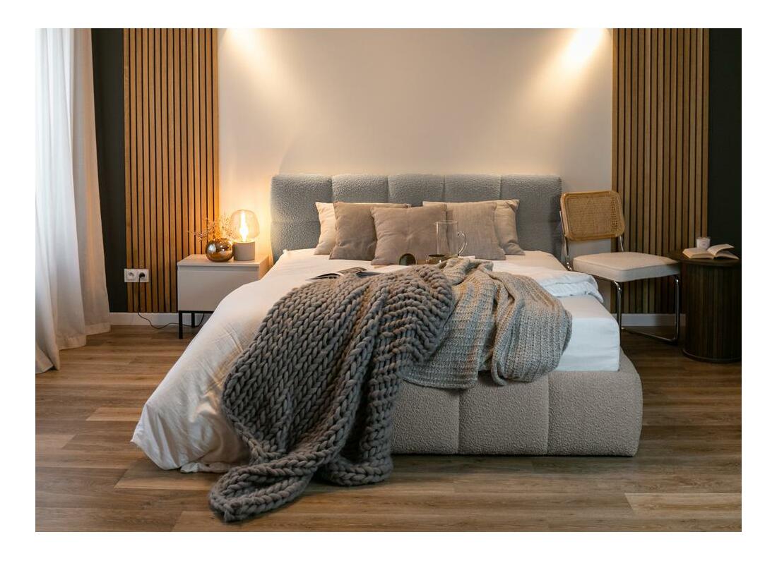 ZobrazitHledáte dokonalou postel, která splní vaše nejvyšší očekávání z hlediska pohodlí, stylu a funkčnosti? Představujeme vám čalouněnou postel – kus nábytku, který bude plně vyhvat vašim potřebám Čalouněná postel je dokonalým spojením funkčnosti a moderního designu, který dodá vaší ložnici eleganci a styl! Tato postel, navržená s ohledem na pohodlí a estetiku, jistě upoutá vaši pozornost. Stylové čelo postele je navrženo tak, aby dokonale ladilo se zaoblenými hranatými tvary podnože. Tato ucelená kompozice dodává posteli eleganci a harmonii. Oblé tvary celé konstrukce zdůrazňují moderní charakter nábytku, díky čemuž je skutečnou ozdobou interiéru. Kvý rám, na kterém spočívá matrace, poskytuje pevnou oporu a odolnost. Díky tomu můžete klidně spát s vědomím, že postel je stabilní a odolná. Jednou z hlavních vlastností, kterými se postel vyznačuje, jsou plynové pohony. Díky nim má postel flexibilní a hladký systém zvedání matrace, který umožňuje pohodlný a snadný přístup k nádobě na lůžko umístěné pod rámem. Jedná se o ideální řešení pro ty, kteří chtějí maximálně využít prostor ve své ložnici. Další výhodou postele je výběr dvou různých látek v různých barvách. Můžete si vybrat z široké škály barev a textur, které se přizpůsobí vašemu individuálnímu stylu a výzdobě ložnice Vyberte si postel a užijte si pohodlí, eleganci a funkčnost Detaily produktu: čalouněná opěrka hlavy se stylovými zaoblenými čtverci, zadní část opěrky hlavy je čalouněna černou podšívkou, plocha na spaní: 140x200 cm, kvý rám včetně, omezovač posuvu rámu zajišťující bezpečné používání, rám má 34 lamel - husté uspořádání příček výrazně zvyšuje komfort při používání postele, dvoukomorový kontejner na lůžko pokrývající celou plochu na spaní, výška spací plochy: 35 cm, nábytek je čalouněný látkou Legend 04 v šedé barvě (teplý odstín), Legend je absolutní legendou ve světě textilu. Jeho jedinečné vlastnosti jej dělají mimořádně žádaným mezi milovníky luxusních povrchových úprav a kvalitních materiálů. Je vyroben z boucle tkaniny, která má charakteristickou strukturu, která připomíná jemné smyčky. Právě tyto smyčky vytvářejí jedinečný vzhled a jemné nuance, které dodávají tkanině jedinečný charakter. Hustá vazba látky Legend zaručuje její výjimečnou trvanlivost a odolnost při každodenním používání. Díky tomu si můžete být jisti, že látka si i při intenzivním používání zachová svůj krásný vzhled po mnoho let. Model je dostupný v šířkách: 140 cm, 160 cm a 180 cm.
