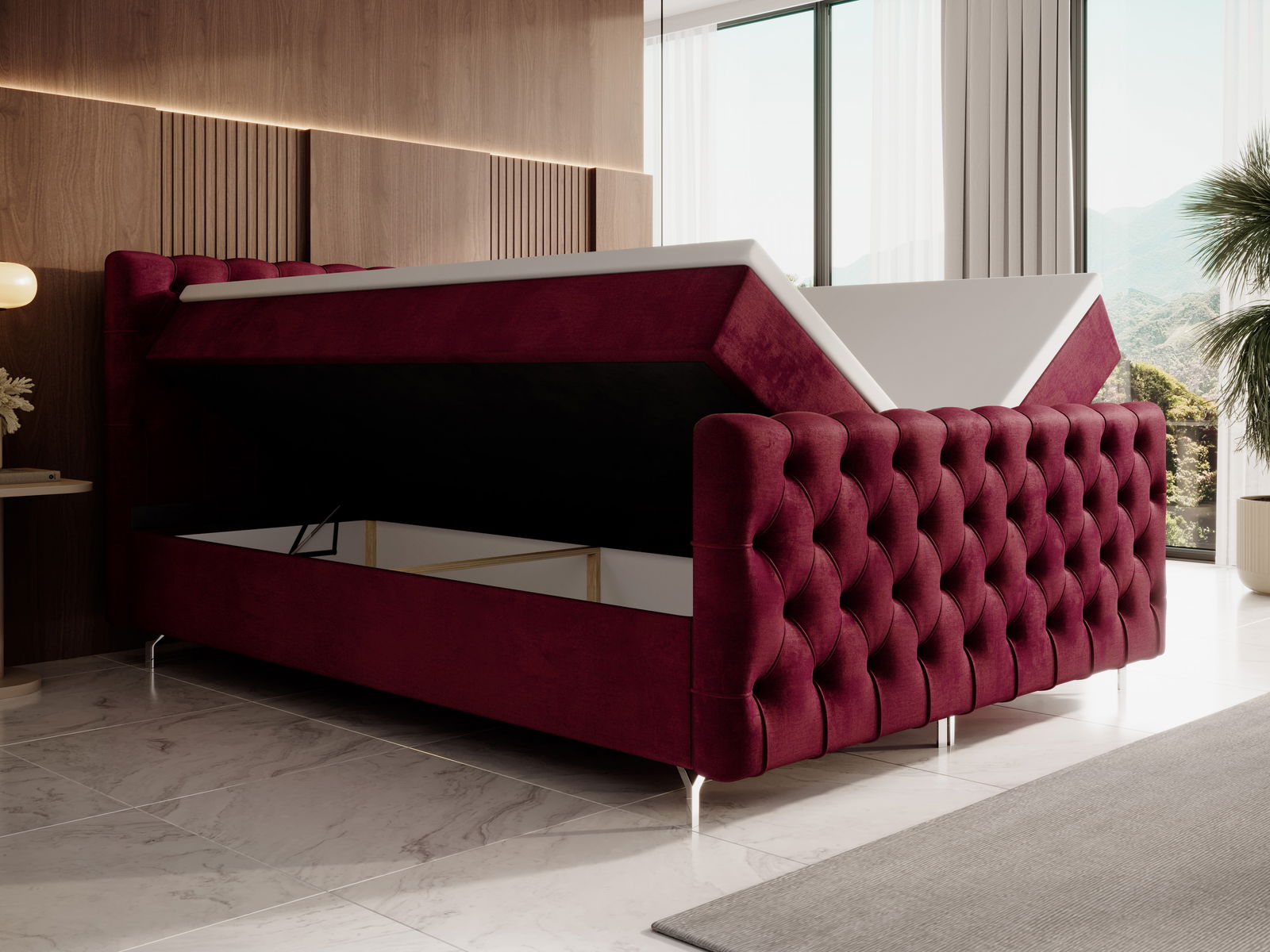 Manželská postel 140 cm Clinton Comfort (bordó) (s roštem, s úl. prostorem)