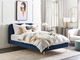 Zvýrazněte vzhled své ložnice s touto stylovou postelí s minimalistickým designem. Modré sametové čalounění je nejen příjemné na dotek, ale i odolné a trvanlivé. zaručují stabilitu nábytku.