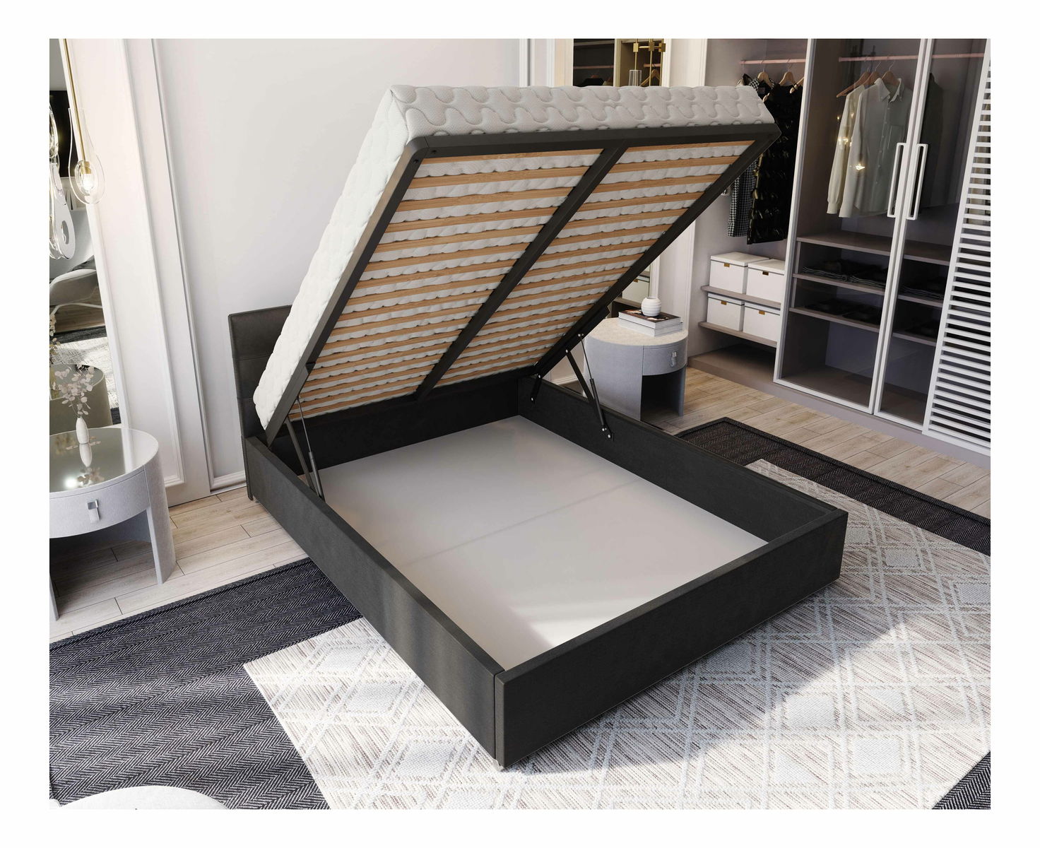 Manželská postel 140 cm Hermila (černá) (s roštem a úložným prostorem)