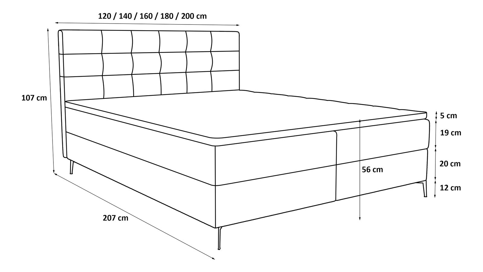 Rozměry plochy na spaní (VxŠxH): 51/56 matrace: Comfort Taštičková (systém taštičkových pružin)