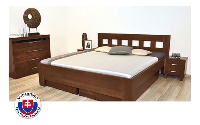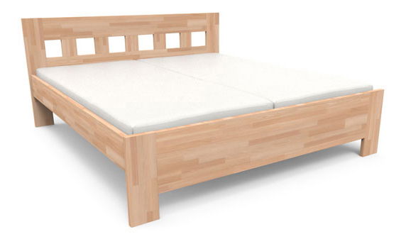 Manželská postel Jana SENIOR vyrobená z masivního dřeva buk nebo dub (parketový design) dodá Vaší ložnici tu správnou atmosféru vhodnou na klidné odpočívání. Vnitřní rozměry pro matrace jsou 140 x 200 cm. Čelo postele je zdobené otvory, tloušťka masivu (desky) je 30 mm, výška čela při hlavě je 90 cm a po horní hranu bočnice je výška 45 cm. Postel je vybavena vnitřním výškově nastavitelným kováním, slouží k upravení výšky roštu a padne vhod, pokud máte vysoký nebo naopak tenčí (nižší) typ matrace. V ceně postele není zahrnut matrace ani rošt, ale můžete si je zakoupit v našem obchodě. Postel se vyrábí také v délkách 210 a 220 cm.
