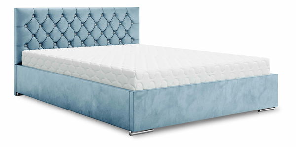 Manželská postel ze série Kerry v moderním stylu s dekorem v tkanině na vysokém čele postele. Uvnitř postele naleznete rošt i úložný prostor na lůžkoviny. Nabízíme v několika barevných i rozměrových variantách.