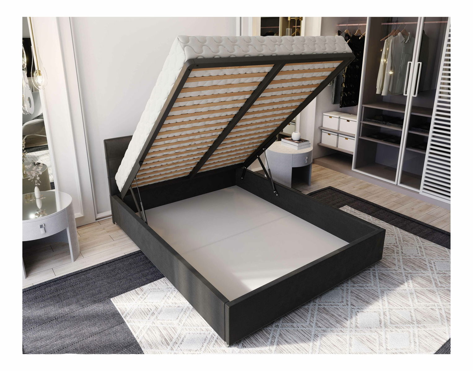 Manželská postel 140 cm Lonnie (černá) (s roštem a úložným prostorem)